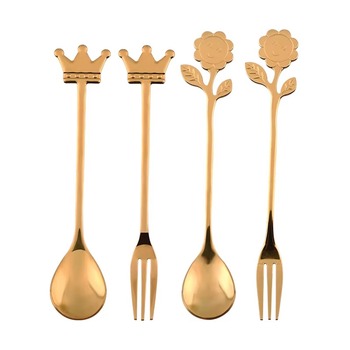 Gold Finished Tea Spoon with Flower Crown Handle Stylish and Durable Ideal for Home Cafe Parties and Special Use From India