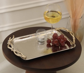 ถาดเสิร์ฟโลหะสีเงินสุดหรูเหมาะสำหรับการรับประทานอาหารที่ทันสมัยการตกแต่งบ้านที่ทันสมัยและการใช้งานในชีวิตประจำวันและการโฮสต์สำหรับแขก