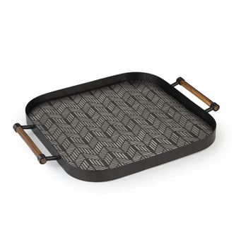 ถาดเสิร์ฟทรงสี่เหลี่ยมสีดำและสีขาวหรูหราทันสมัยเหมาะสำหรับการรับประทานอาหารร่วมสมัยของตกแต่งบ้านที่ทันสมัยและใช้ในชีวิตประจำวัน