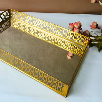 ถาดโลหะพรีเมี่ยมที่มีขอบสีทองและมีรายละเอียดกระจกเหมาะสำหรับช่วงเทศกาลของขวัญและการตั้งค่าโต๊ะจากอินเดีย