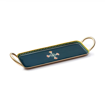 ถาดเสิร์ฟโลหะสี่เหลี่ยมสีฟ้ามีสไตล์พร้อมรายละเอียดของนักออกแบบเหมาะสำหรับปาร์ตี้ทานอาหารสุดหรูและใช้ในชีวิตประจำวัน